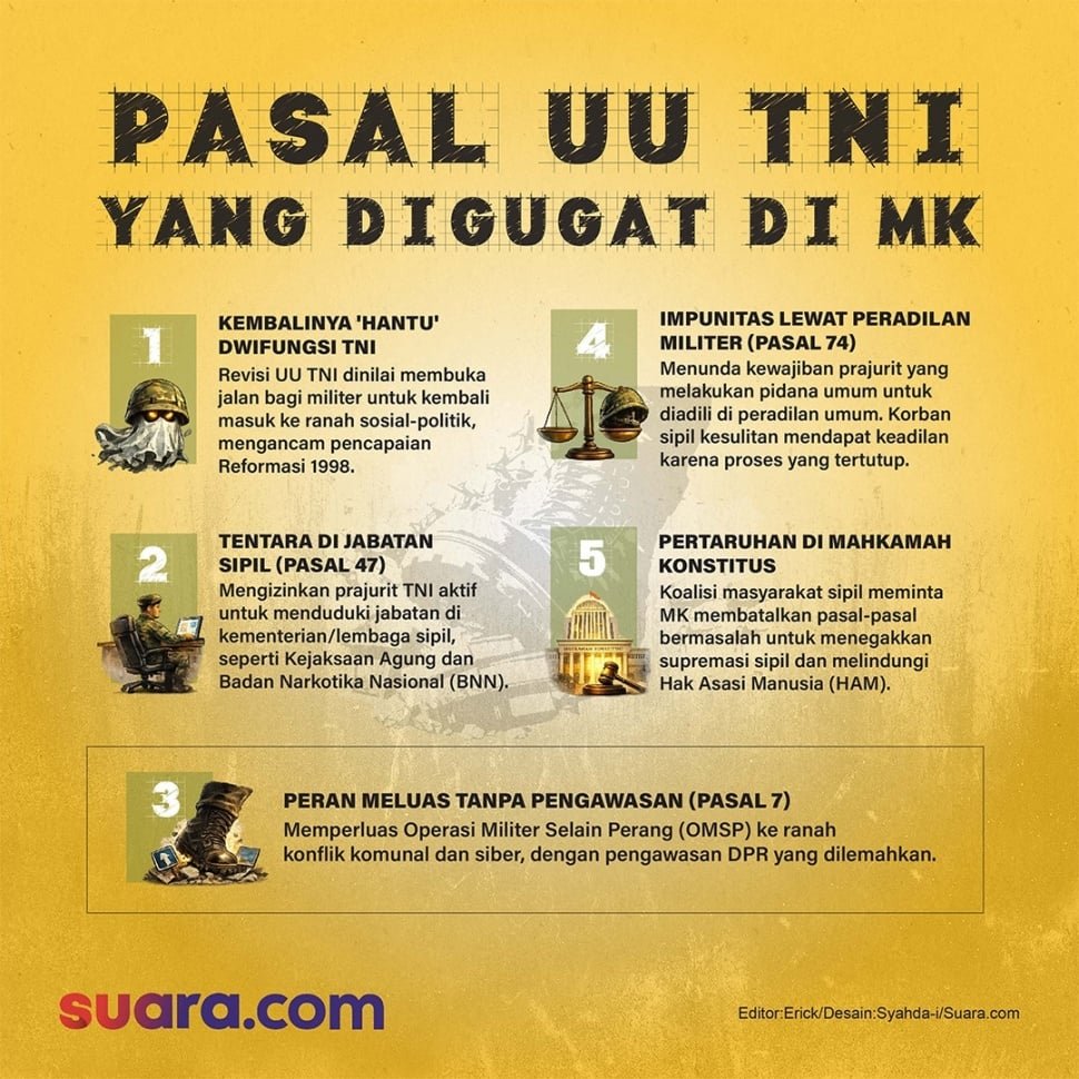 Kekhawatiran semakin dalam saat menilik Pasal 47, yang secara spesifik mengizinkan perwira TNI aktif untuk menduduki jabatan di kementerian dan lembaga sipil.