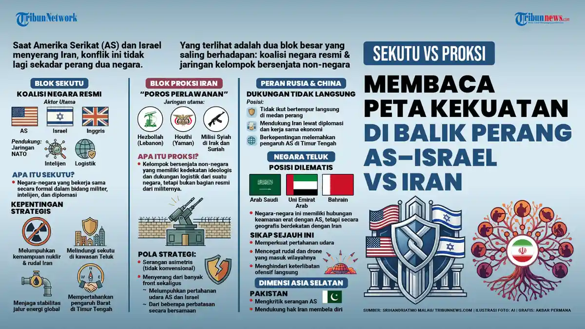 Militer Iran menyebarkan tekanan ke berbagai arah dengan menyerang sejumlah aset penting AS-Israel di Qatar, Bahrain, UEA, dan Arab Saudi seperti pangkalan militer, pusat data hingga kedutaan AS di negara itu.