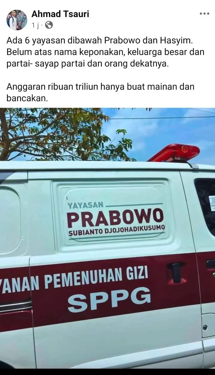 Pengurus: Anak semata wayang Prabowo, Didit Hediprasetyo, serta adiknya, Hashim Djojohadikusumo, tercatat sebagai pengurus dalam yayasan yang mengelola dapur MBG tersebut.