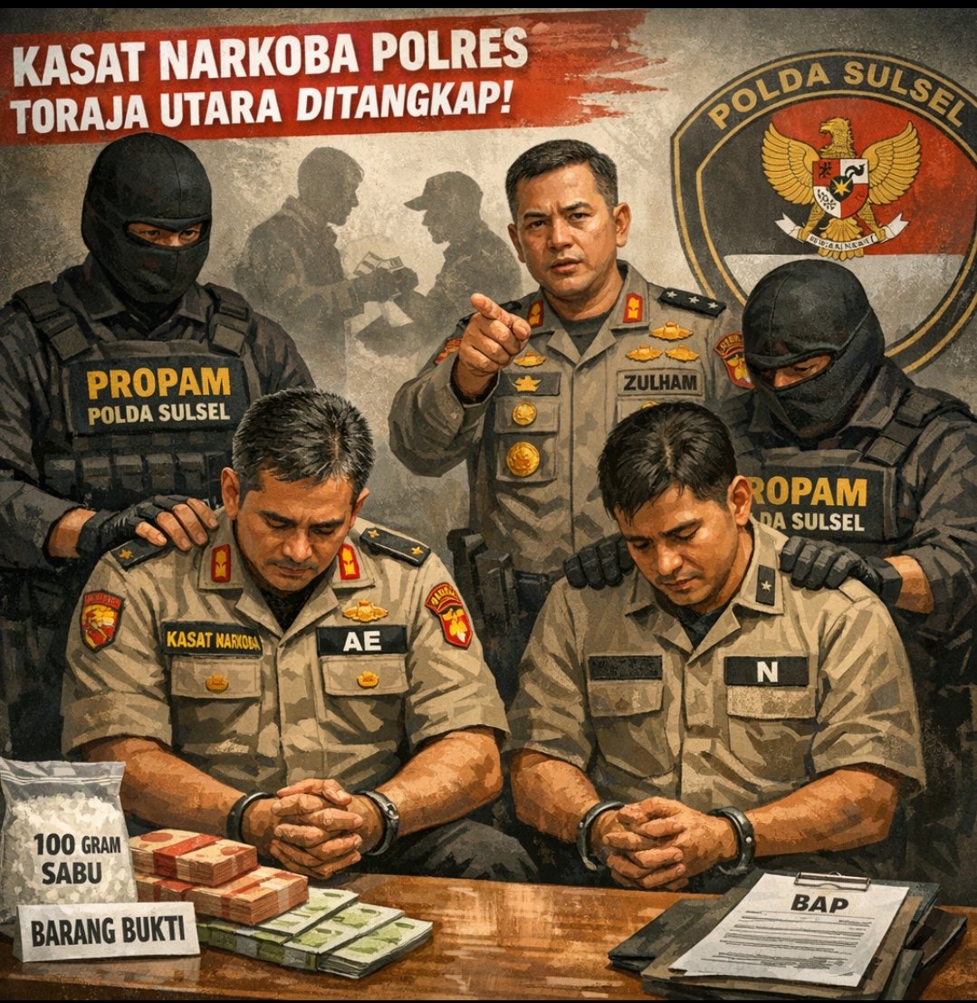 Yang mengejutkan, mereka adalah Kasat Reserse Narkoba Polres Toraja Utara, AKP Arifan Efendi, dan seorang Kanit Narkoba, Aiptu Nasrul.