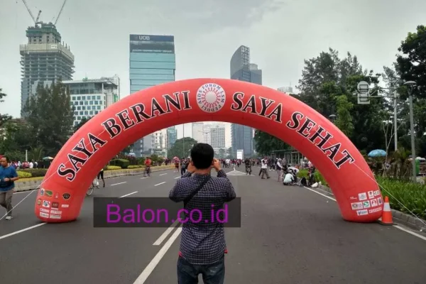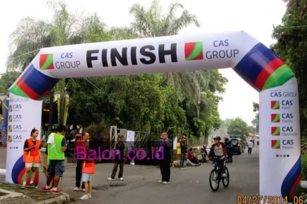 Struktur inflatable seperti balon gate start finish menjadi salah satu produk yang paling diminati. Selain tampil mencolok, gerbang semacam ini juga memberikan elemen fotografi yang kuat.