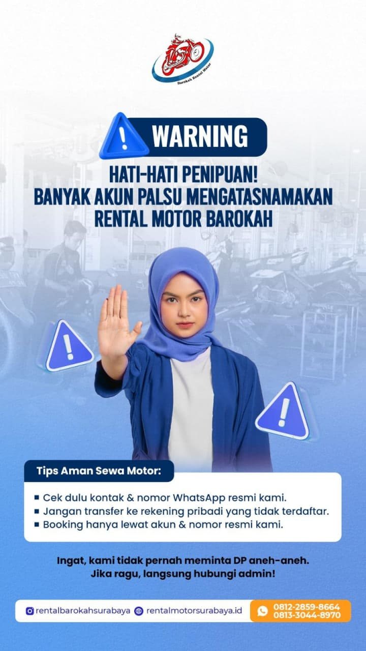 Untuk mendapatkan jaminan unit dan pelayanan terbaik, pastikan Anda menghubungi kontak resmi Rental Motor Surabaya (Barokah Rental) berikut ini: