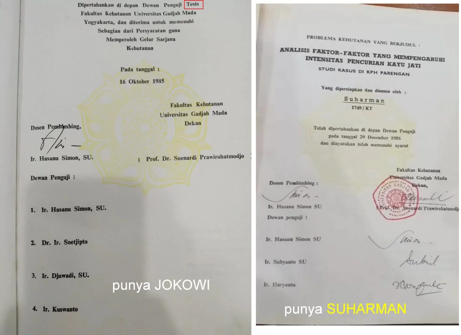 Ia juga tidak mengetahui secara langsung dokumen akademik atas nama Joko Widodo di Fakultas Kehutanan UGM, selain informasi yang ia lihat melalui media terkait KRS dan skripsi.
