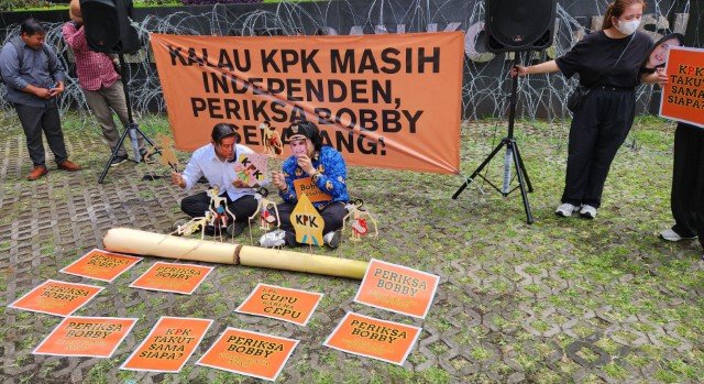 Aksi teatrikal ini menjadi simbol kritik keras terhadap KPK yang dinilai enggan memeriksa Bobby dalam kasus dugaan suap proyek infrastruktur jalan di Sumut.