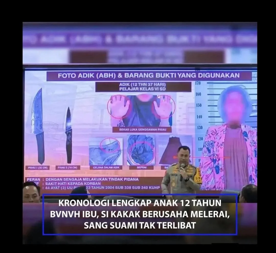 Pada saat itu, barulah kakak AI melihat AI tengah menusuk ibunya menggunakan pisau.