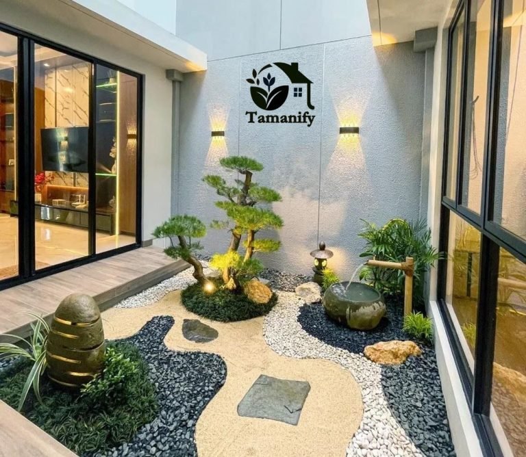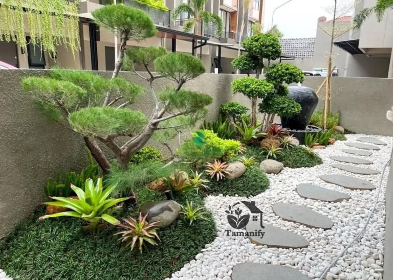 • Taman Zen Modern: Kerikil putih + batu alam + 1-2 pohon bonsai + bangku kayu. Tenang untuk meditasi.
