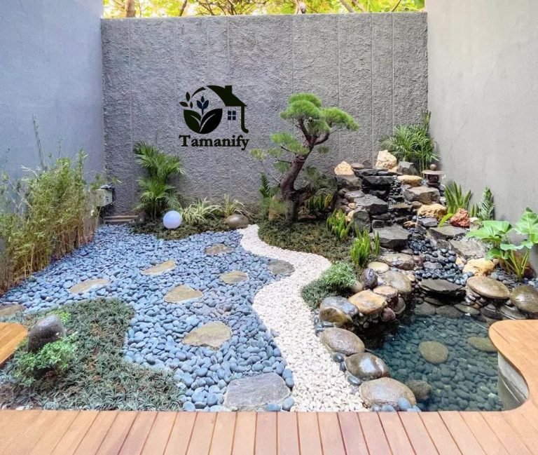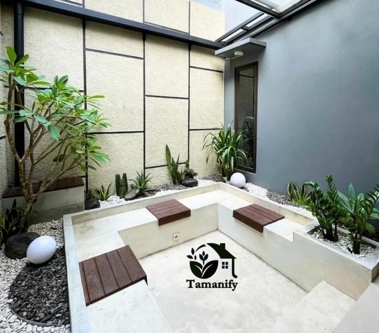 • Taman Zen Modern: Kerikil putih + batu alam + 1-2 pohon bonsai + bangku kayu. Tenang untuk meditasi.