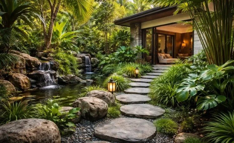Konsep taman yang satu ini memang tergolong eksotik dan dapat dijadikan area bersantai yang baik, sebab taman ini menggunakan konsep seperti area alam bebas di kepulauan. Untuk menambah kesan tropis pada taman ini umumnya juga akan ditambah dengan tanaman khas seperti pohon palm, bambu, dan sebagainya yang dibuat sangat rimbun layaknya hutan.