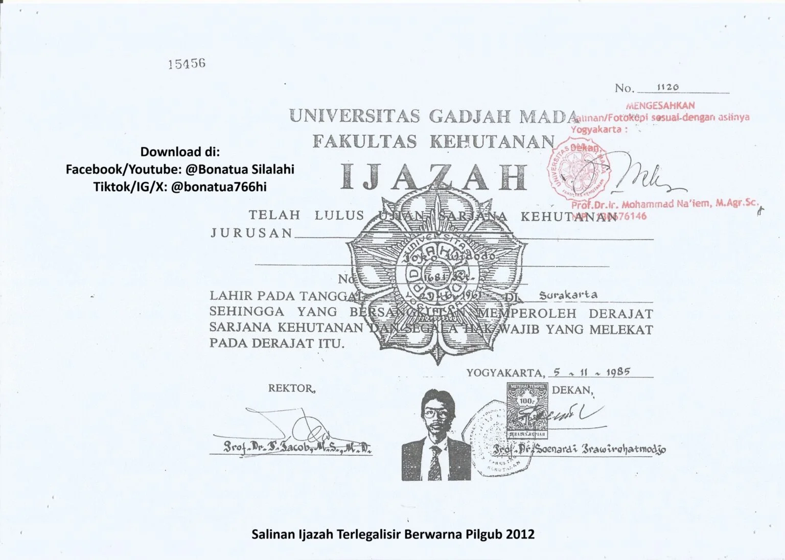Alhamdulillah, baru saja Peneliti Kebijakan Publik Independen Dr. Bonatua Silalahi memperoleh 2 (dua) Salinan Fotocopy “Ijazah JkW terlegalisir” tanpa sensor sesuai putusan Sidang KIP dari KPUD Surakarta.