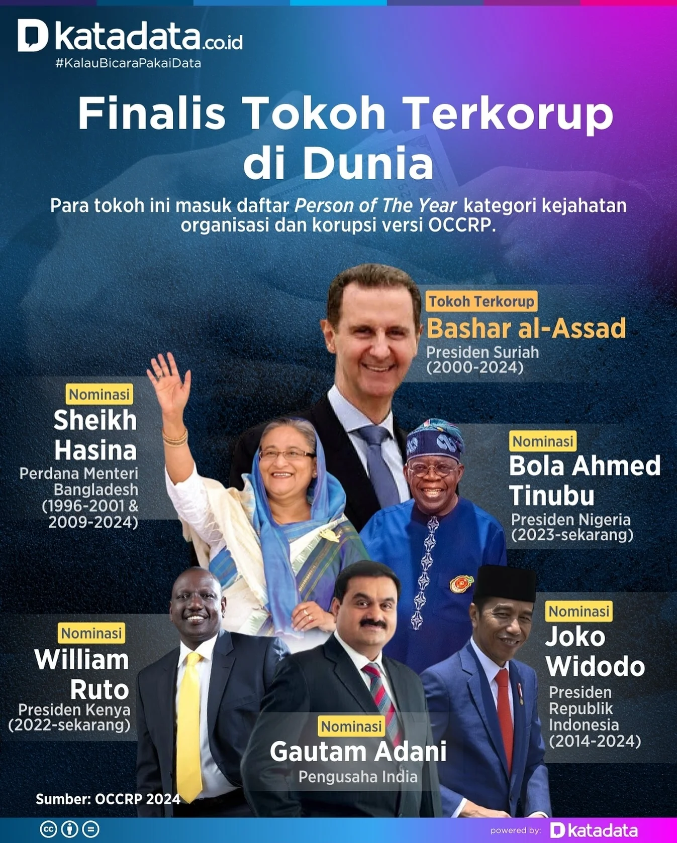 Sederet pemimpin dunia masuk dalam daftar tokoh paling korup tahun 2024 versi lembaga yang fokus di isu korupsi, Organized Crime and Corruption Reporting Project (OCCRP).